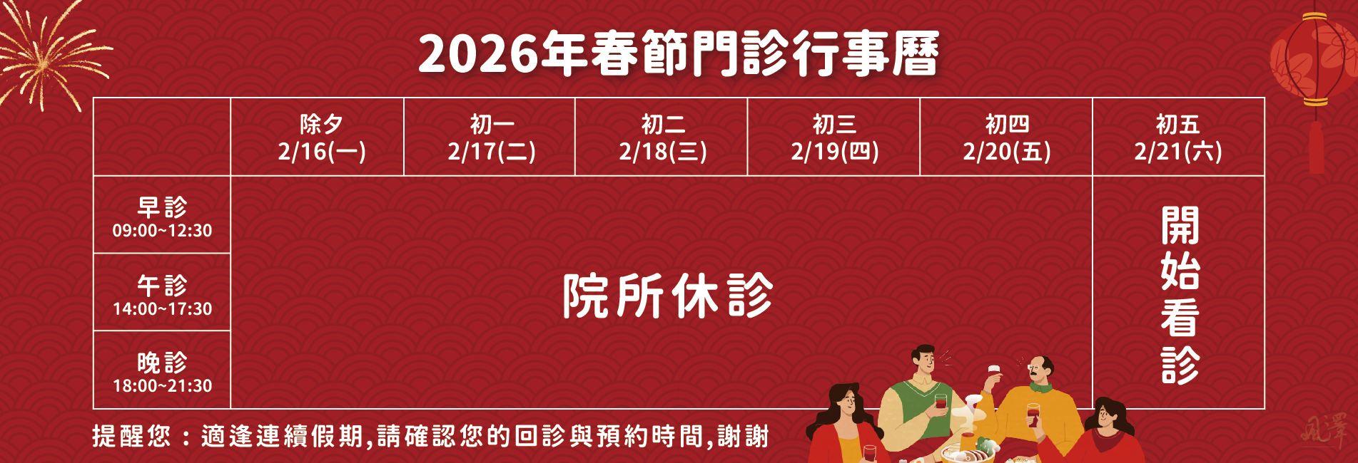 ◎如有美妍針或埋線需求,因治療所需時間較長,請最晚於前一日電話預約,另於報到時主動說明,美妍針或埋線報到時間為結診前半小時(12:00、17:00、21:00)截止,謝謝
