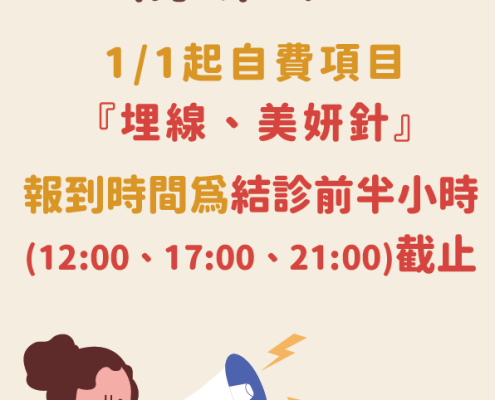 fengze.bd2026-01-02 13:33:202026-01-02 13:38:33【院所公告】自費項目報到時間說明